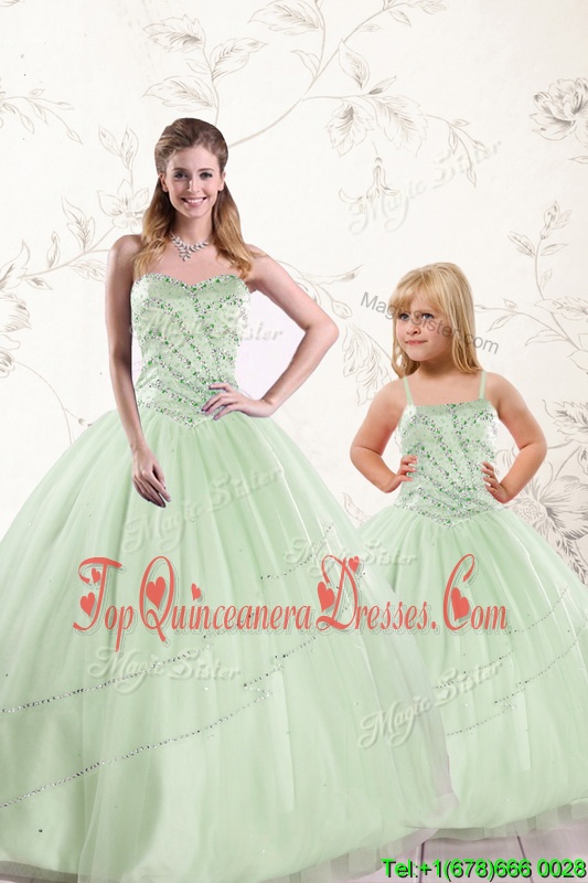 Cute Beading 15th Birthday Dress Apple Green Lace Up Sleeveless Floor Length