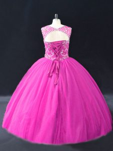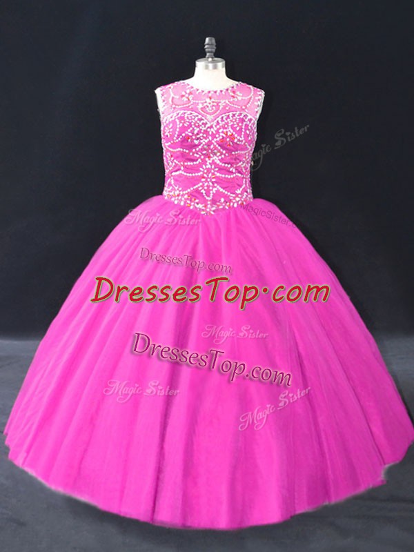 Cute Fuchsia Quinceanera Gown Sweet 16 and Quinceanera with Beading Scoop Sleeveless Lace Up