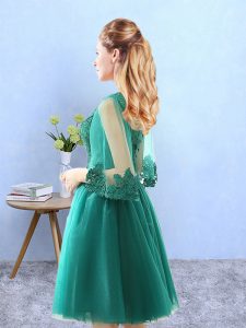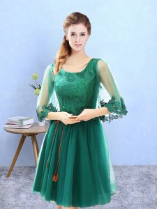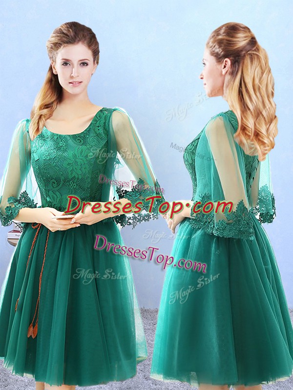 Cute Knee Length Green Quinceanera Court Dresses Scoop 3 4 Length Sleeve Lace Up