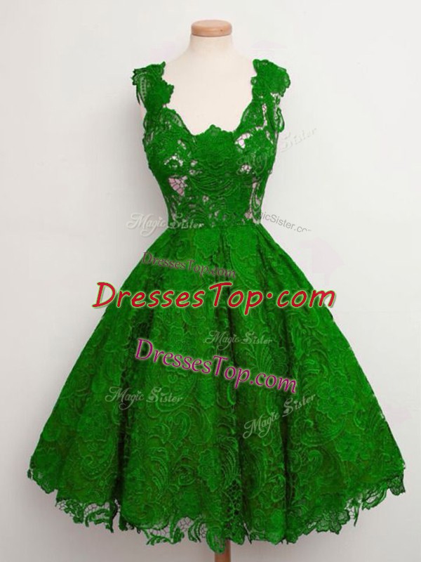 Cute Knee Length Green Vestidos de Damas Straps Sleeveless Lace Up
