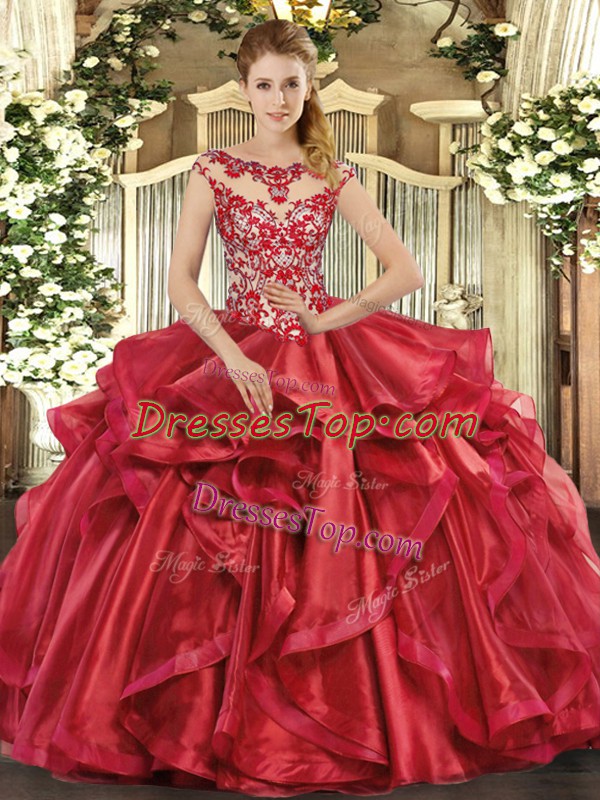 Cute Organza Cap Sleeves Floor Length Quinceanera Dresses and Appliques and Ruffles