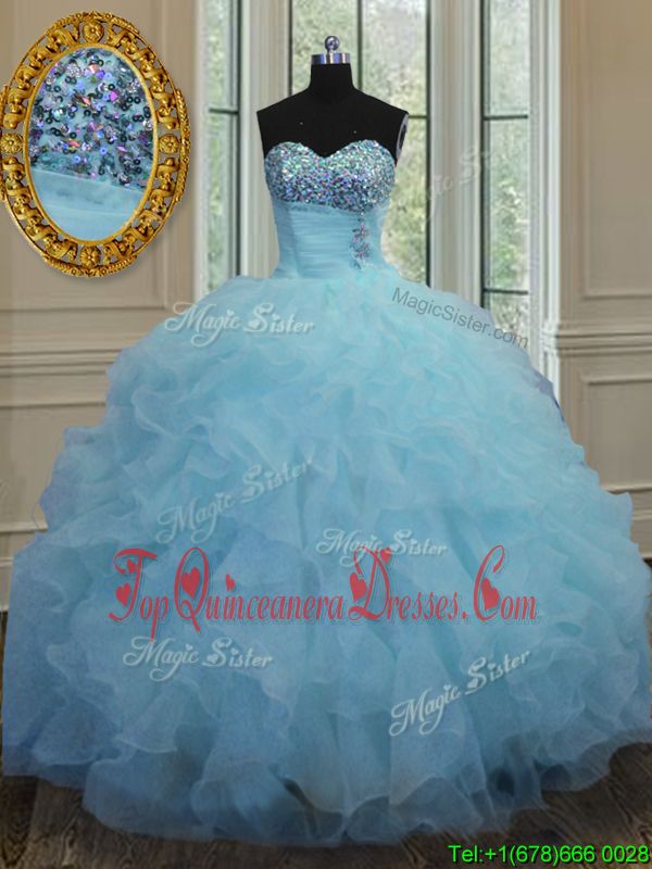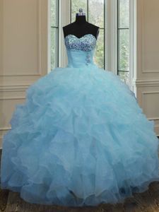 Cute Organza Sleeveless Floor Length 15 Quinceanera Dress and Beading and Ruffles
