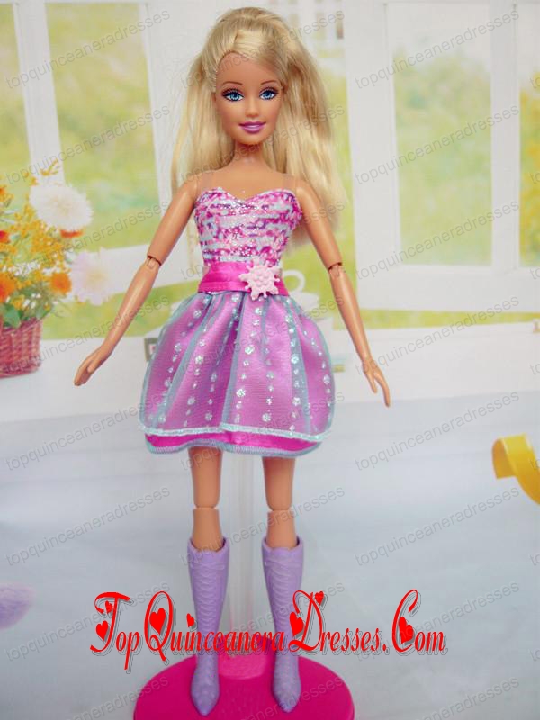 Cute Red Holiday Dress Mini-length Tulle for Noble Barbie Doll