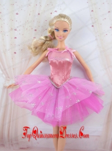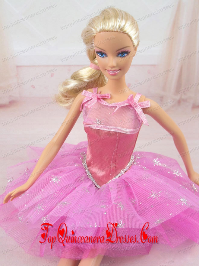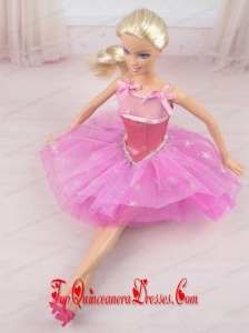 Cute Rose Pink Straps Beaded Decorate Party Dress For Barbie Doll