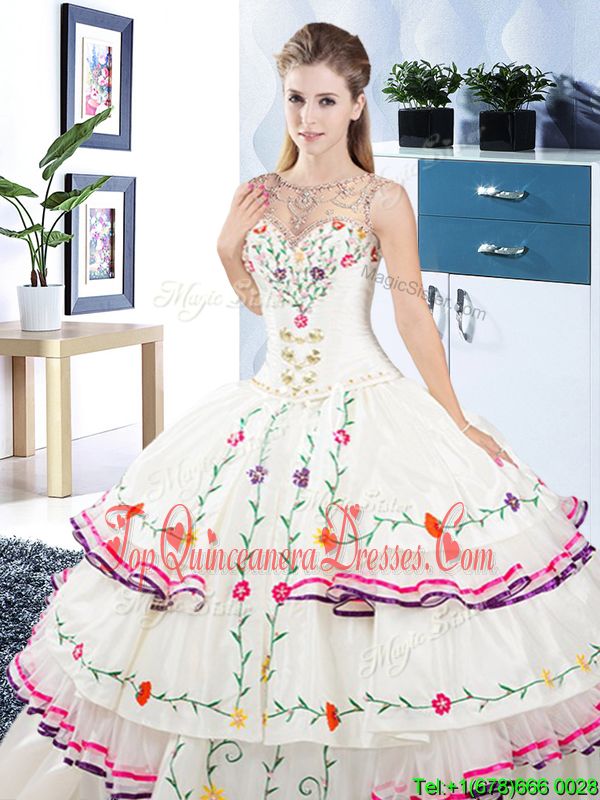 Cute Ruffled Floor Length White 15 Quinceanera Dress Scoop Sleeveless Lace Up