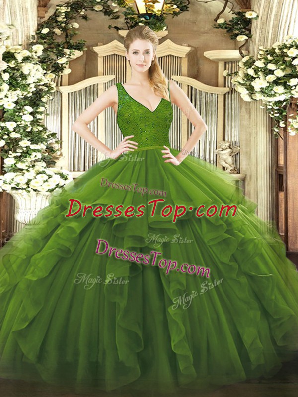Cute Ruffles 15th Birthday Dress Olive Green Zipper Sleeveless Floor Length