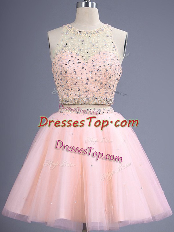 Cute Scoop Sleeveless Lace Up Damas Dress Peach Tulle