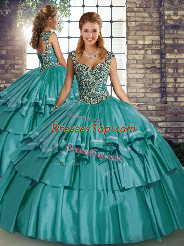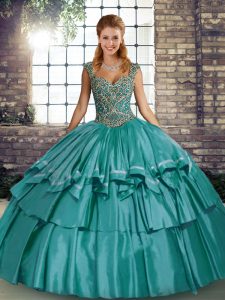 Cute Sleeveless Beading and Ruffled Layers Lace Up Quinceanera Gowns