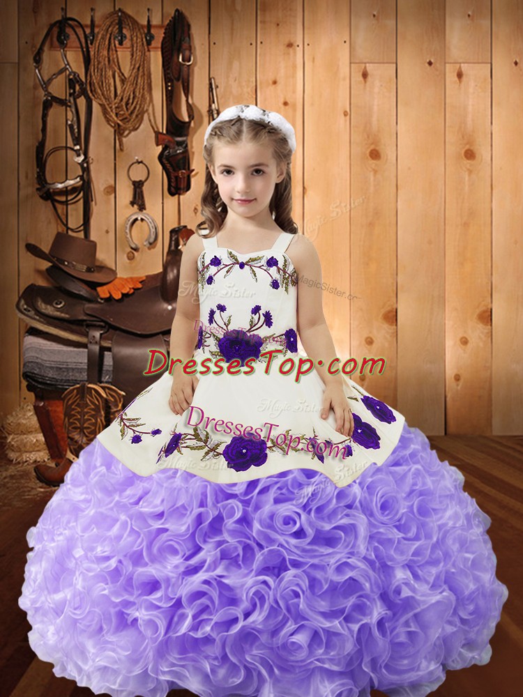 Cute Sleeveless Embroidery and Ruffles Lace Up Little Girls Pageant Dress