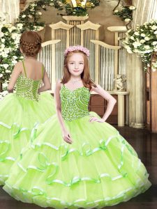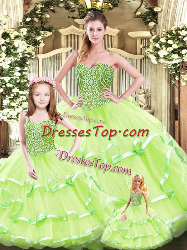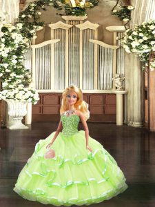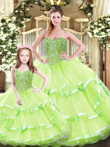 Cute Sweetheart Sleeveless Vestidos de Quinceanera Floor Length Beading and Ruffled Layers Yellow Green Tulle