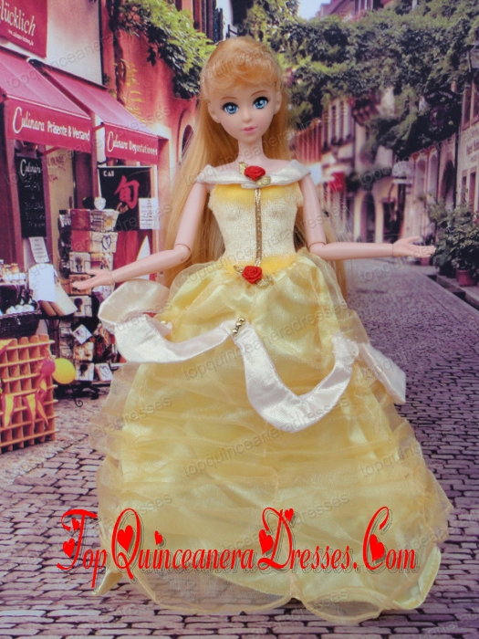 Cute Yellow Scoop Hand Made Flowers Barbie Doll Dress