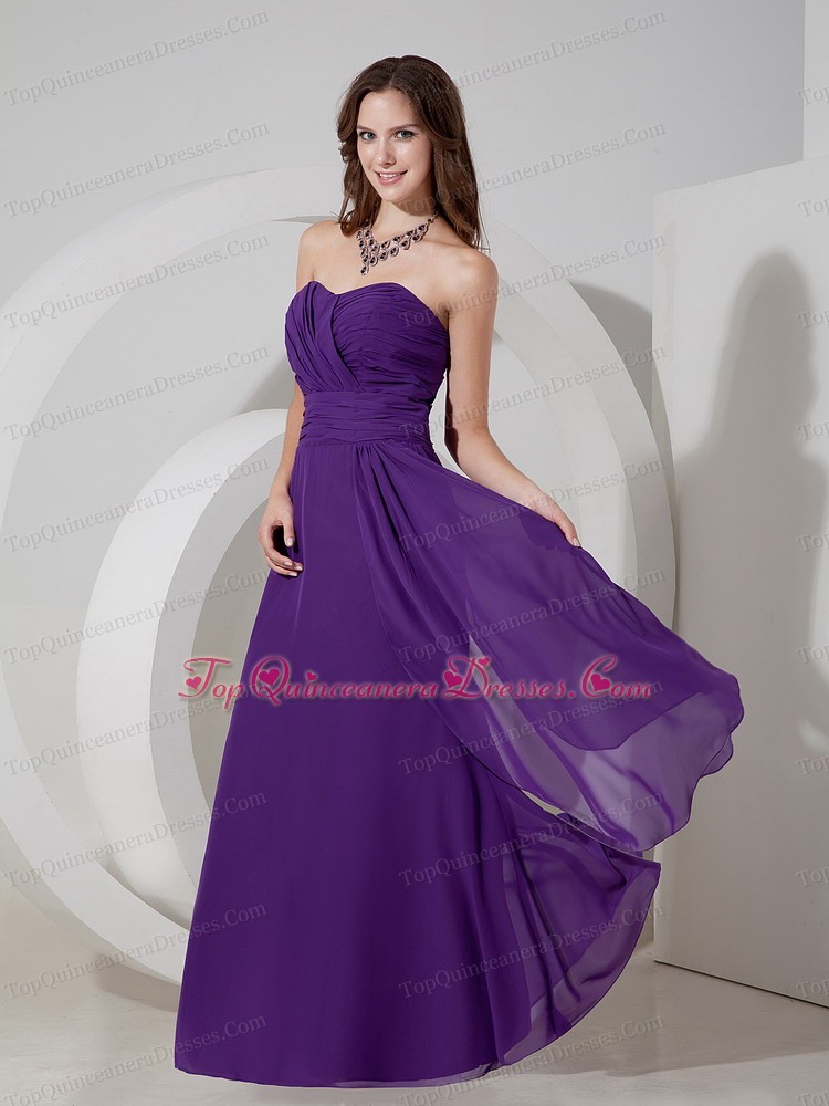 Dama Dress for Quince Purple Empire Chiffon Ruch Sweetheart