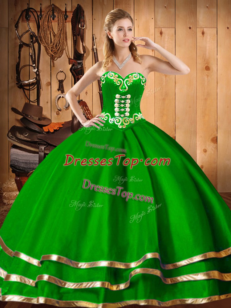 Dark Green 15th Birthday Dress Military Ball and Sweet 16 and Quinceanera with Embroidery Sweetheart Sleeveless Lace Up