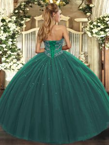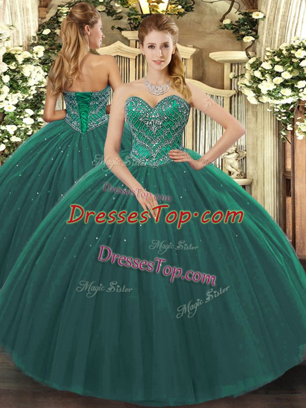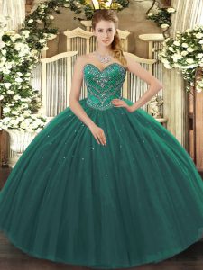 Dark Green Ball Gowns Tulle Sweetheart Sleeveless Beading Floor Length Lace Up Quinceanera Gown