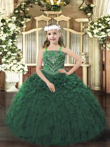 Dark Green Custom Made Pageant Dress Party and Quinceanera with Beading and Ruffles Straps Sleeveless Lace Up