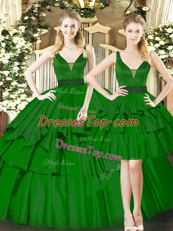 Dark Green Lace Up Straps Beading and Ruching Quinceanera Gowns Organza Sleeveless