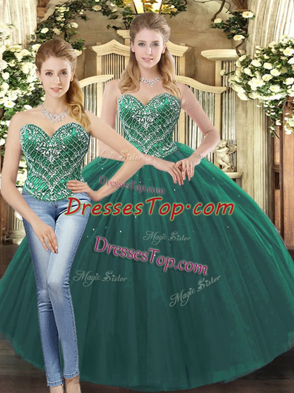 Dark Green Sleeveless Beading Floor Length Sweet 16 Quinceanera Dress