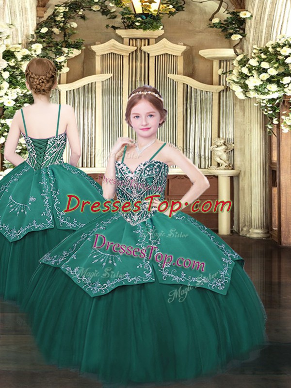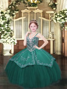 Dark Green Sleeveless Floor Length Beading and Embroidery Lace Up High School Pageant Dress