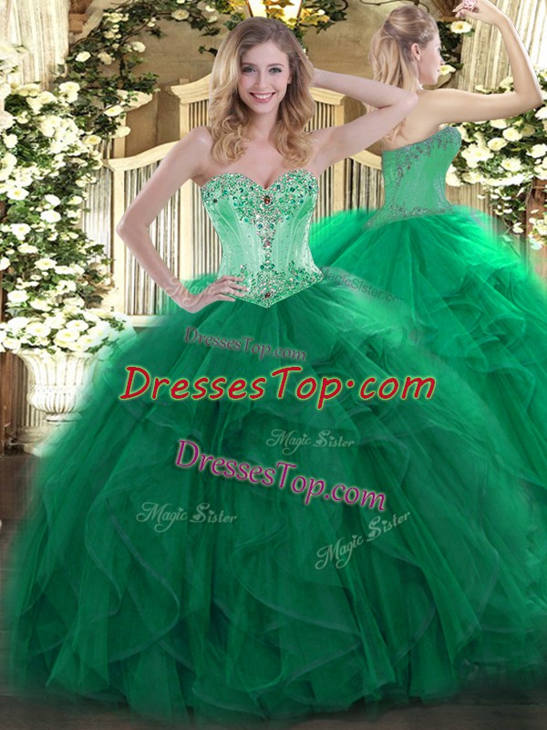 Dark Green Sleeveless Organza Lace Up Quince Ball Gowns for Sweet 16 and Quinceanera