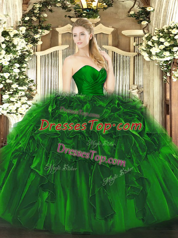 Dark Green Sweetheart Lace Up Ruffles 15th Birthday Dress Sleeveless
