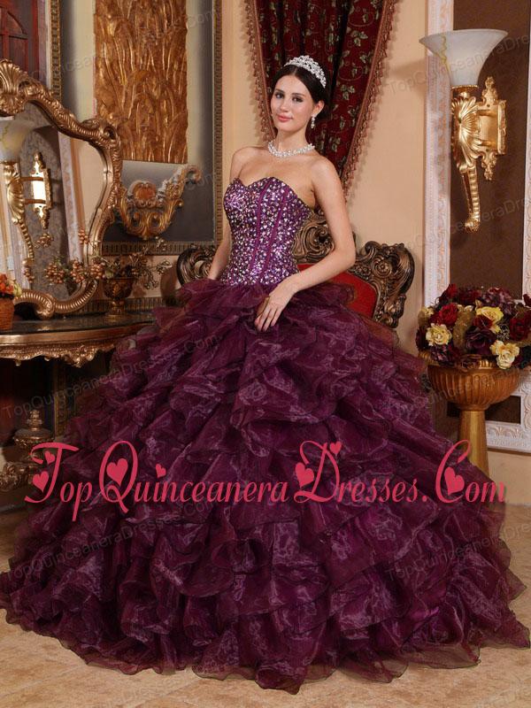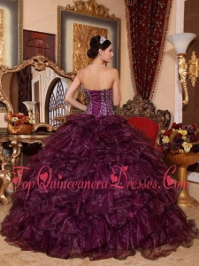 Dark Purple Ball Gown Sweetheart Floor-length Organza Sequins Unique Quinceanera Dress