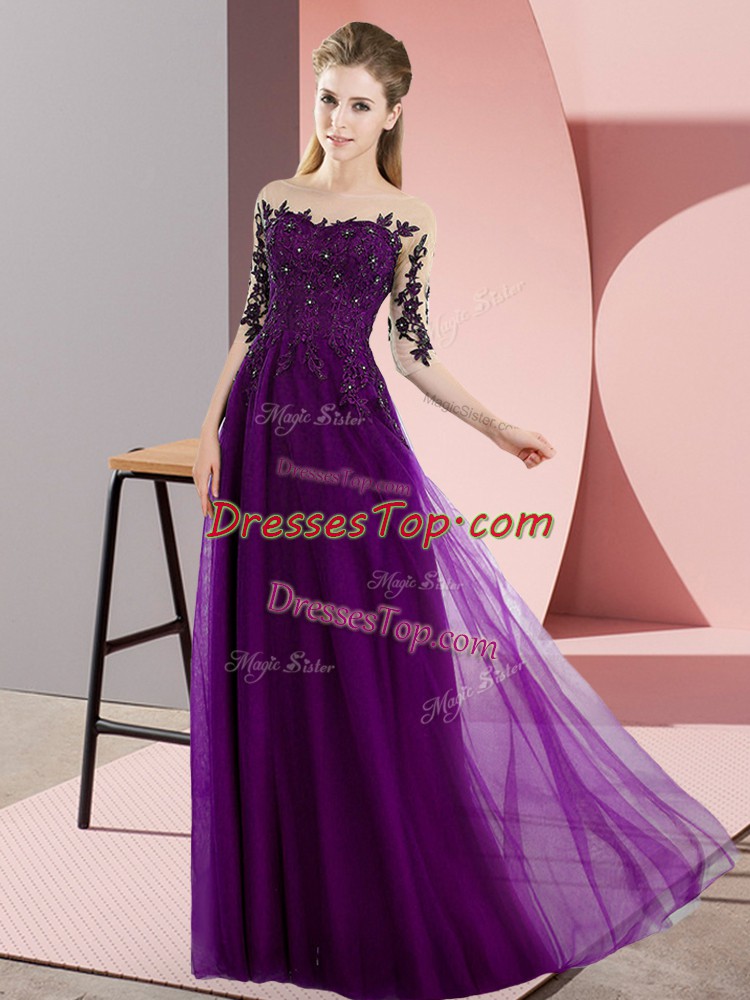 Dark Purple Bateau Neckline Beading and Lace Court Dresses for Sweet 16 Half Sleeves Lace Up