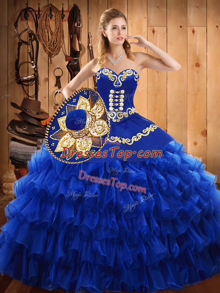 Dazzling Ball Gowns 15 Quinceanera Dress Blue Sweetheart Tulle Sleeveless Floor Length Lace Up