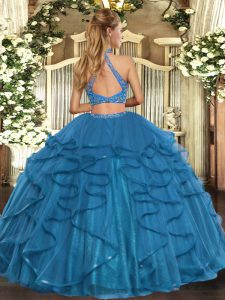 Dazzling Floor Length Two Pieces Sleeveless Turquoise 15th Birthday Dress Criss Cross