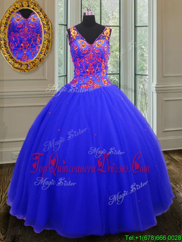 Dazzling Floor Length Zipper Sweet 16 Dresses Royal Blue and In for Military Ball and Sweet 16 and Quinceanera with Beading and Sequins