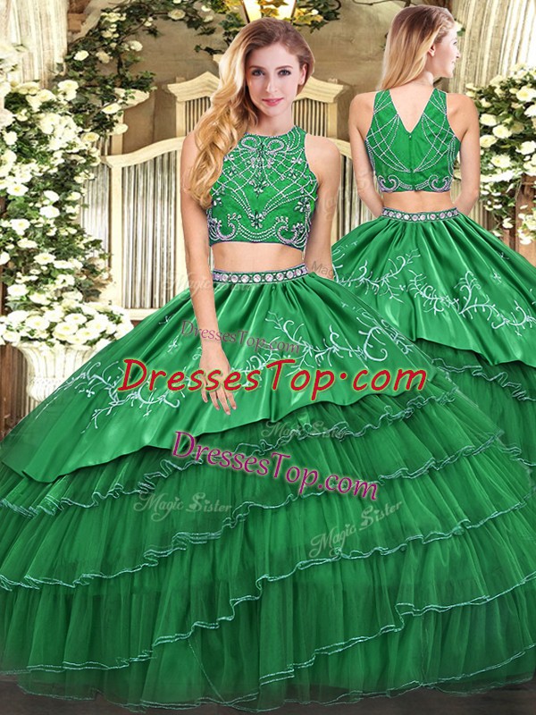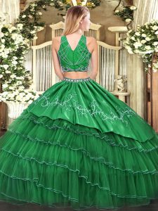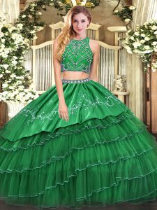 Dazzling Green Sleeveless Tulle Zipper Sweet 16 Dresses for Military Ball and Sweet 16 and Quinceanera