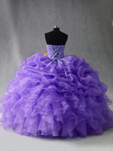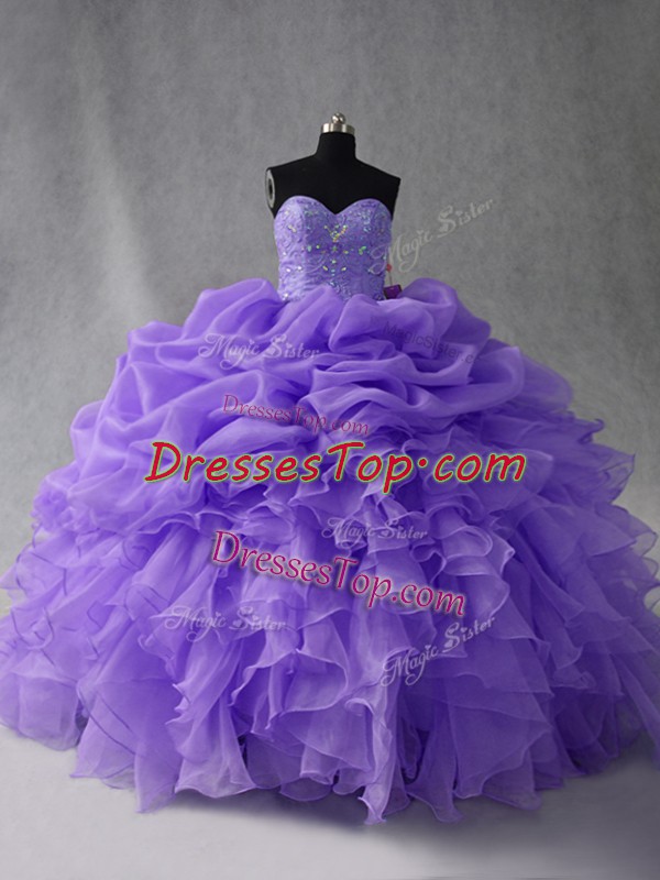 Dazzling Lavender Quinceanera Gowns Sweet 16 and Quinceanera with Beading and Ruffles Sweetheart Sleeveless Lace Up