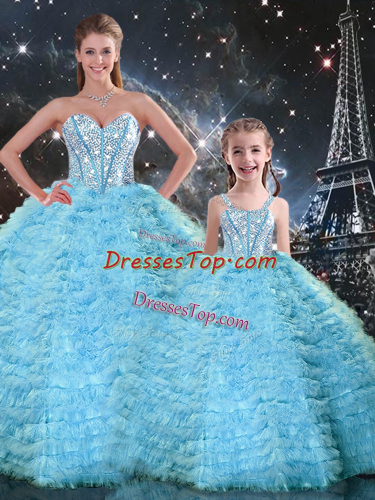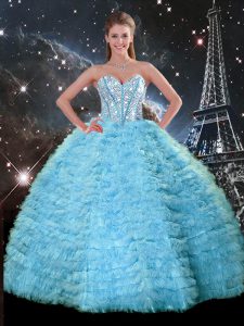 Dazzling Light Blue Lace Up Sweetheart Beading and Ruffles Sweet 16 Dresses Tulle Sleeveless