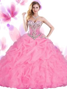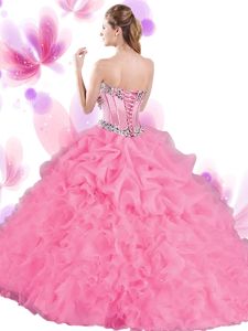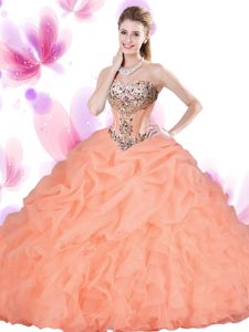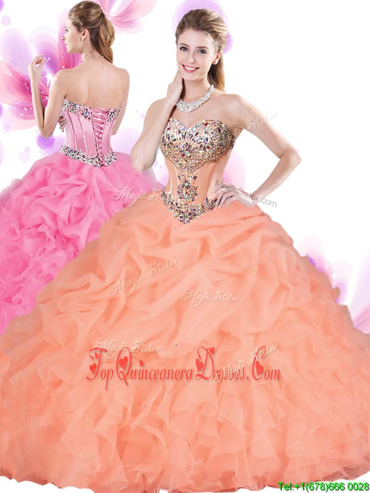 Dazzling Orange Red Tulle Lace Up Sweetheart Sleeveless Floor Length Ball Gown Prom Dress Beading and Ruffles