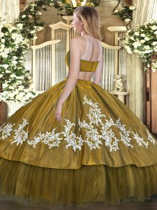 Dazzling Purple Two Pieces Beading and Appliques Sweet 16 Dress Backless Tulle Sleeveless Floor Length