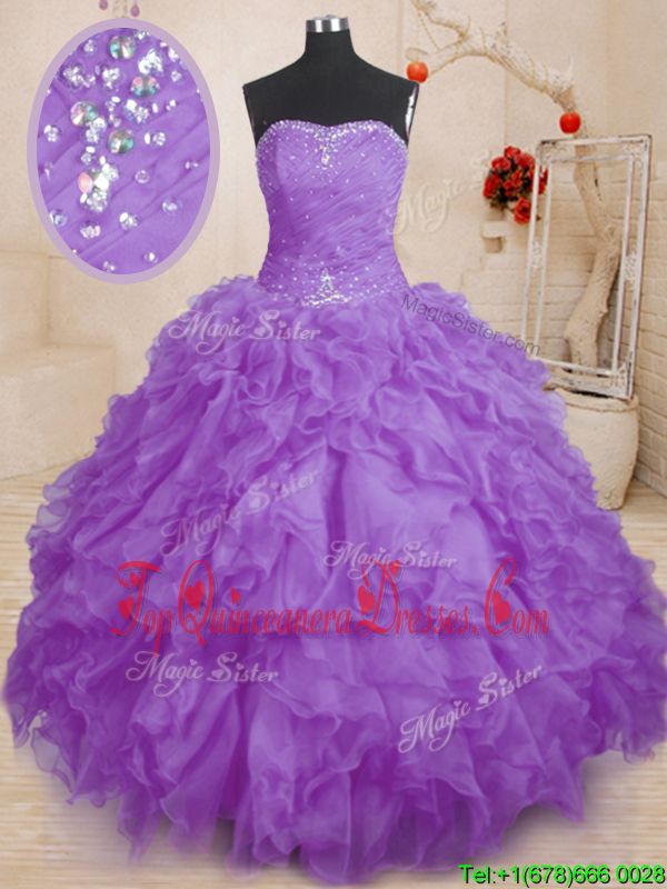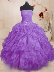Dazzling Sleeveless Beading and Ruffles and Ruching Lace Up Sweet 16 Quinceanera Dress