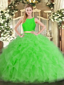 Dazzling Sleeveless Tulle Floor Length Zipper 15 Quinceanera Dress in with Ruffles