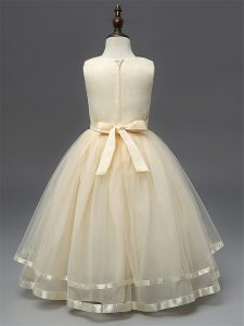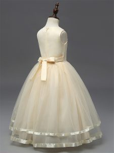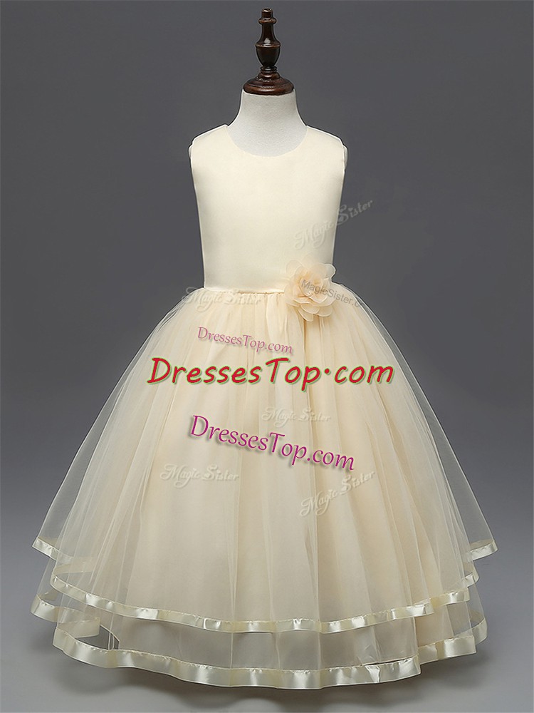 Dazzling Sleeveless Tulle Floor Length Zipper Little Girls Pageant Gowns in Champagne with Hand Made Flower