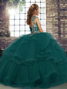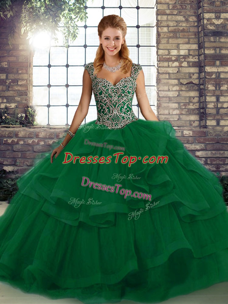 Dazzling Straps Sleeveless Lace Up Sweet 16 Dresses Green Tulle