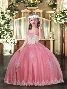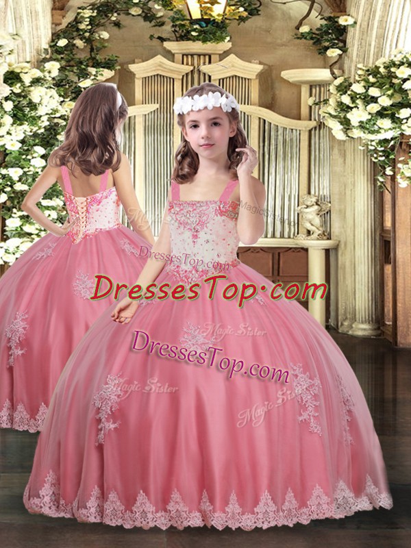 Dazzling Watermelon Red Lace Up Straps Appliques Kids Formal Wear Tulle Sleeveless