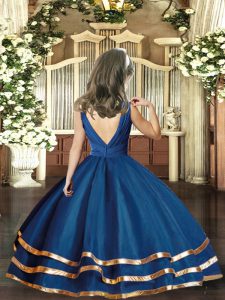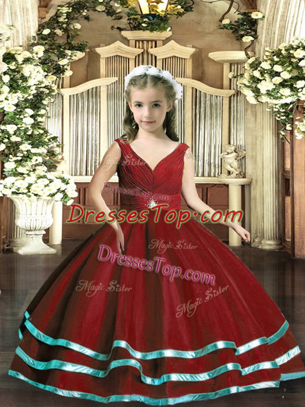 Dazzling Wine Red Ball Gowns Beading and Ruching Kids Formal Wear Backless Organza Sleeveless Floor Length