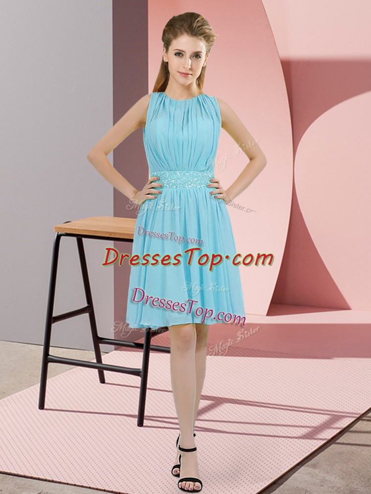 Decent Aqua Blue Damas Dress Prom and Party and Wedding Party with Sequins Scoop Sleeveless Zipper