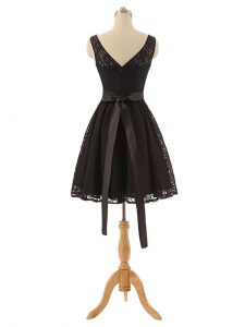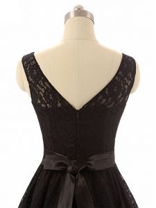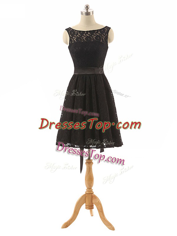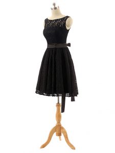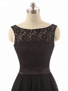 Decent Black Zipper Bateau Lace and Belt Damas Dress Lace Sleeveless