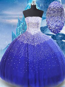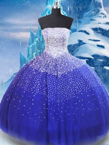 Decent Blue Sweet 16 Dress Military Ball and Sweet 16 and Quinceanera with Beading Strapless Sleeveless Lace Up