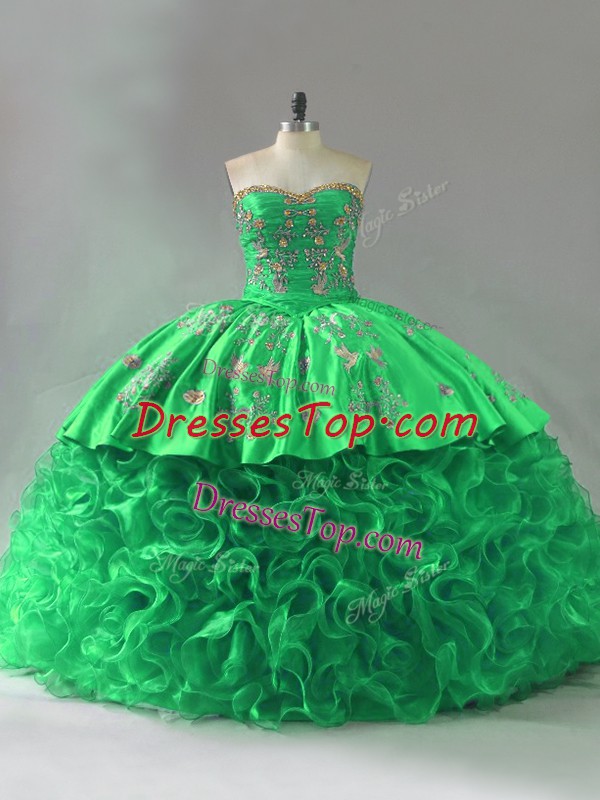 Decent Fabric With Rolling Flowers Sweetheart Sleeveless Lace Up Embroidery and Ruffles 15 Quinceanera Dress in Green