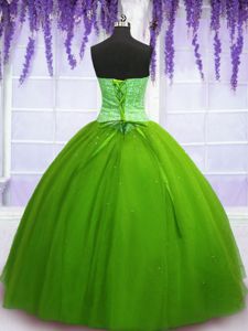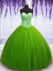Decent Floor Length Quinceanera Gown Tulle Sleeveless Beading