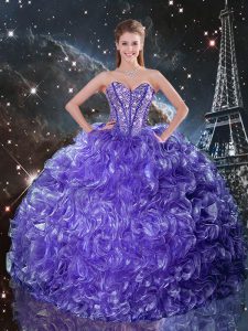 Decent Organza Sweetheart Sleeveless Lace Up Beading and Ruffles 15th Birthday Dress in Purple