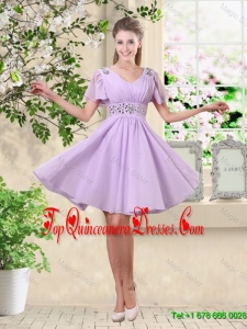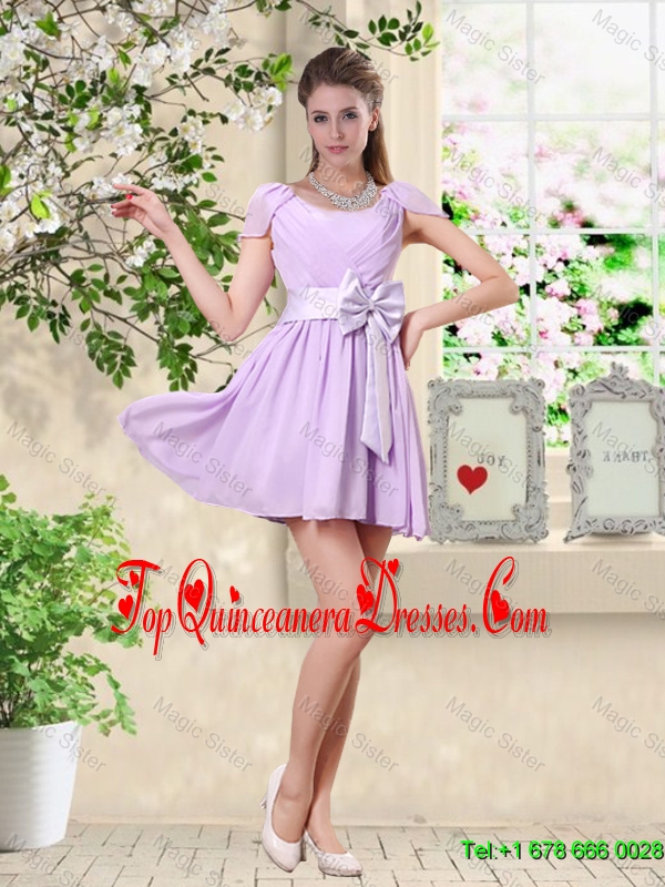Decent Scoop Bowknot Dama Dresses with Cap Sleeves