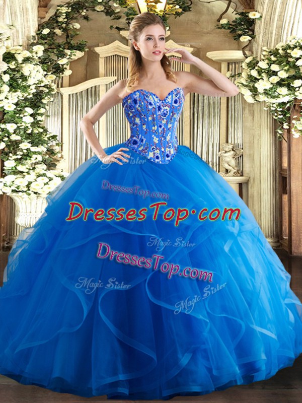 Decent Sleeveless Embroidery and Ruffles Lace Up 15th Birthday Dress
