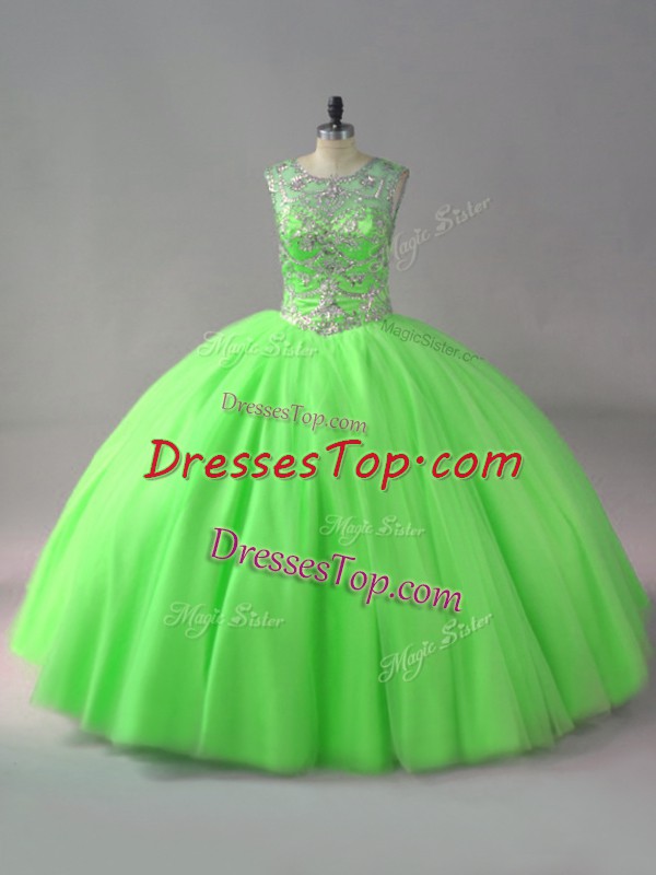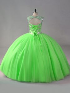 Decent Sleeveless Tulle Floor Length Lace Up Vestidos de Quinceanera in with Beading