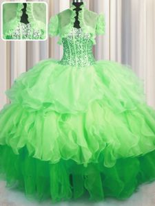 Decent Visible Boning Bling-bling Sweetheart Neckline Beading and Ruffled Layers 15 Quinceanera Dress Sleeveless Lace Up